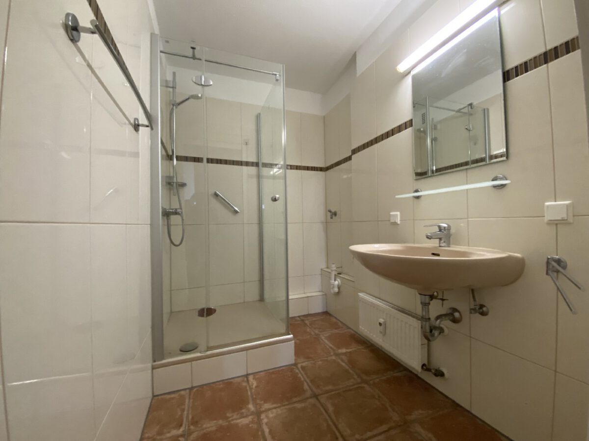 – hell gefliestes, innenliegendes Bad mit Dusche und